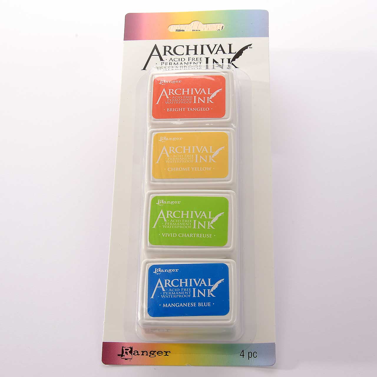 4 Mini-Stempelkissen - Set 3 Hellorange, Chromegelb, Gelbgrün, Manganblau