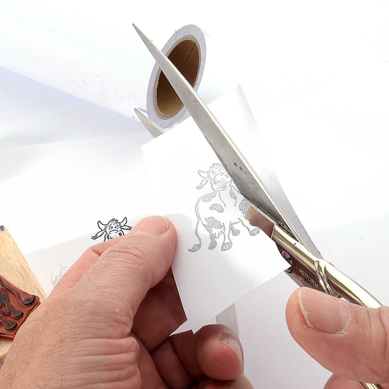 Das Eclipse-Tape (15,1 cm breit - 10,0 m) ist selbstklebendes Schablonen-Papier. Stempeln Sie Ihr Motiv auf das Papier und schneiden Sie es mit einer Schere oder Skalpell aus, fertig ist die Schablone. Und! Wenn Sie zwei oder drei Schablonen von dem selben Motiv benötigen, legen Sie einfach zwei bzw. drei Stück Eclipse übereinander und schneiden so, mehrere Schablonen gleichzeitig. Die spezielle Klebeformel von Eclipse erlaubt es eine einmal gefertigte Schablone immer wieder zuverwenden.