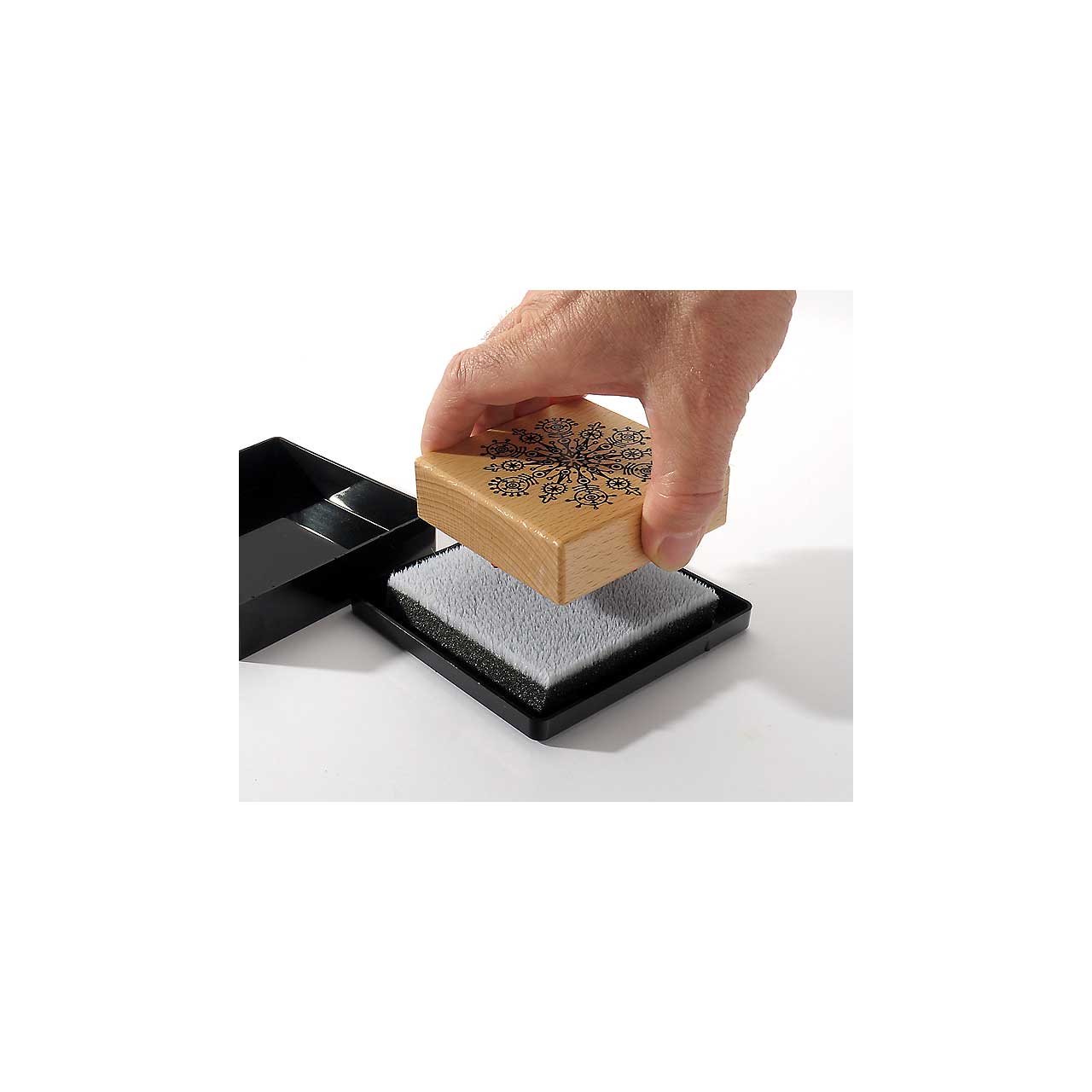 Die feinen Fasern des Ersatzpads dringen tief in das Relief des Stempels ein und säubern das Stempelgummi einfach nur mit etwas Wasser. Mit leichter Seifenlauge oder einem Stempelreiniger geht es noch besser.