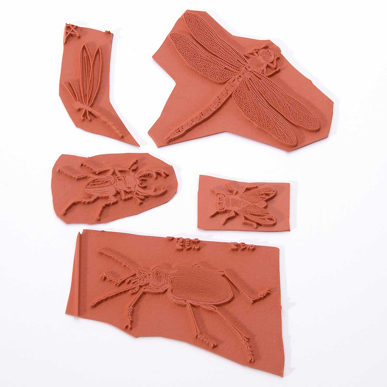 Vulkanisierte Stempelgummis mit einem tiefen Relief für die Selbst-Montage auf Handgriffe aus Holz oder Kunststoff.