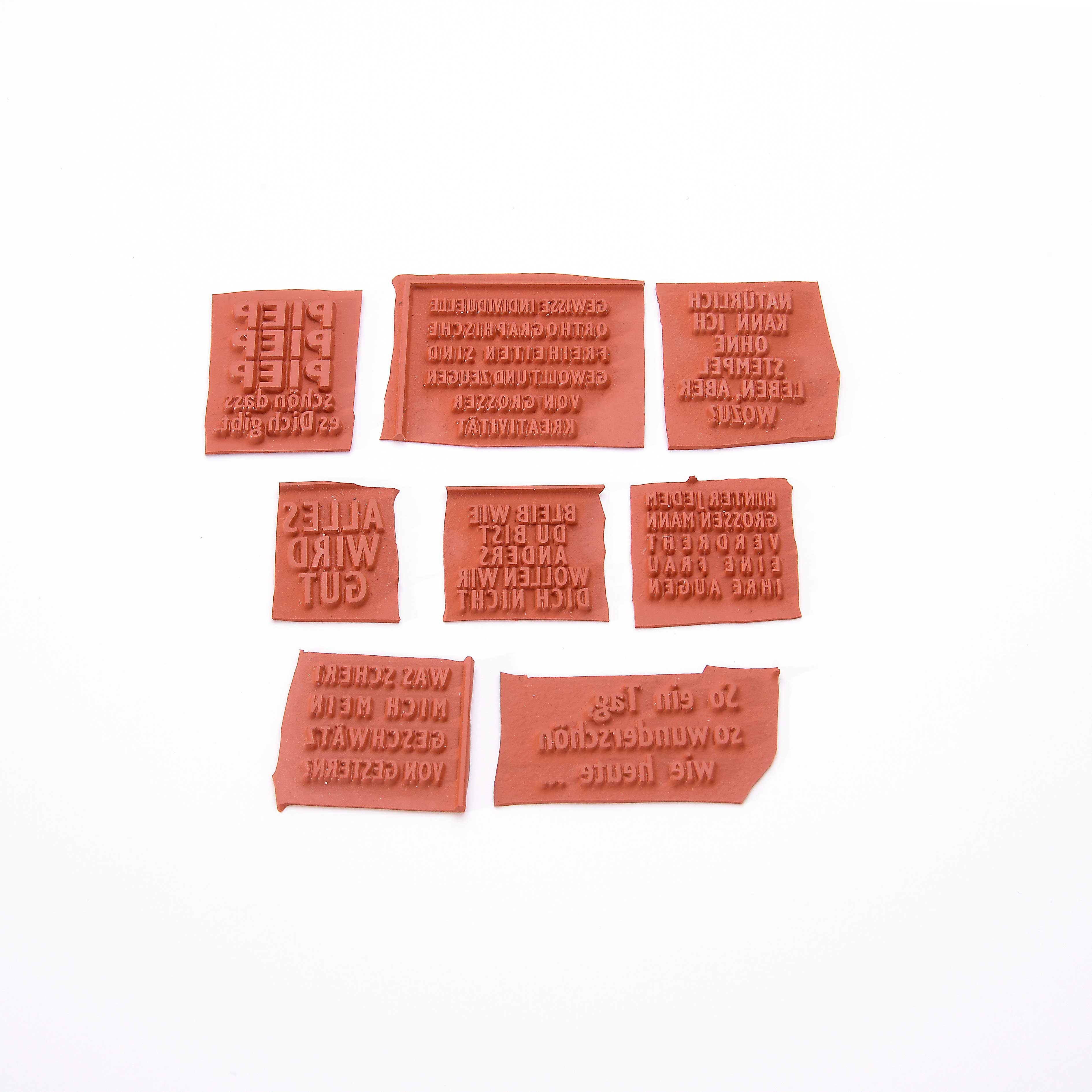 Vulkanisierte Stempelgummis mit einem tiefen Relief für die Selbst-Montage auf Handgriffe aus Holz oder Kunststoff.
