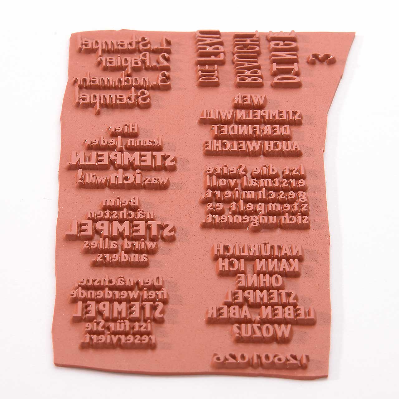 Vulkanisierte Stempelgummis mit einem tiefen Relief für die Selbst-Montage auf Handgriffe aus Holz oder Kunststoff.