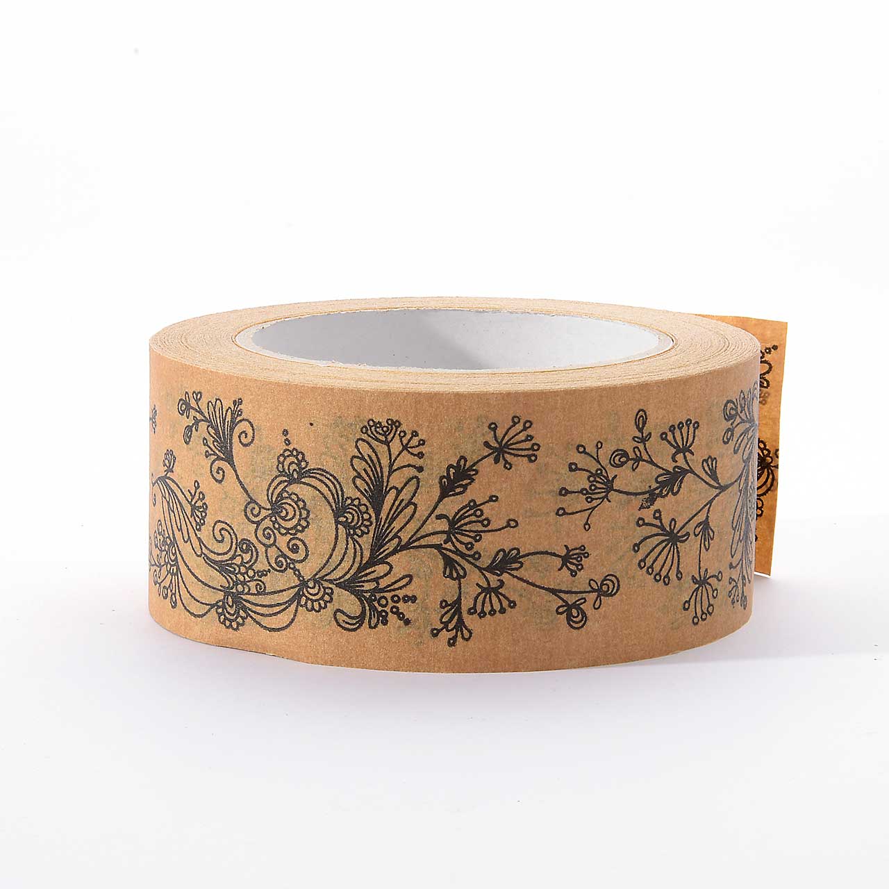 50 m selbstklebendes Papierklebeband, 5 cm breit. Der rückseitige Klebestoff ist aus Naturkautschuk.