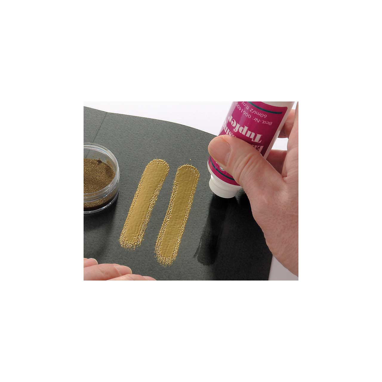 Zum Auftupfen von Emboss-Farbe in freien Formen, auf allerlei Oberflächen.