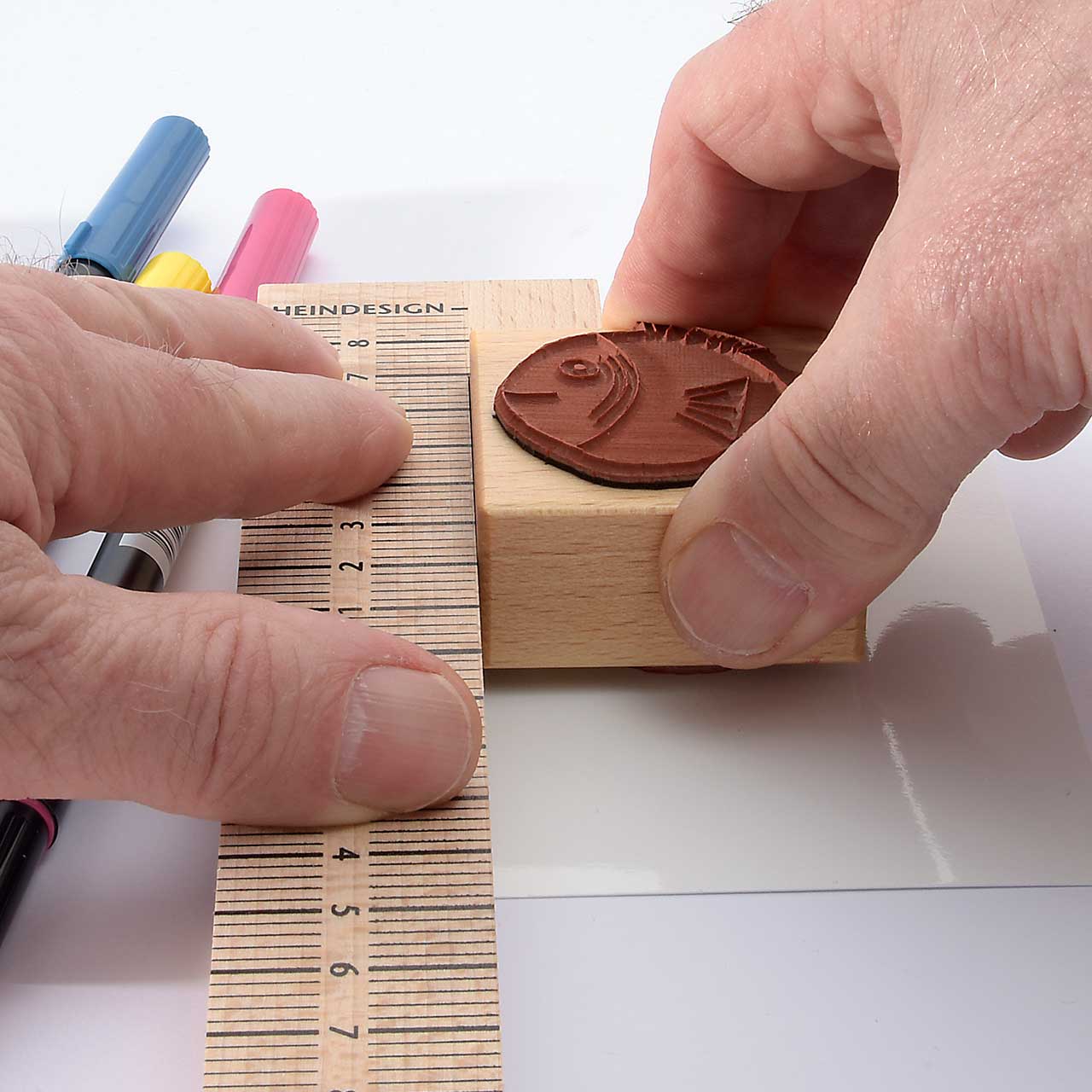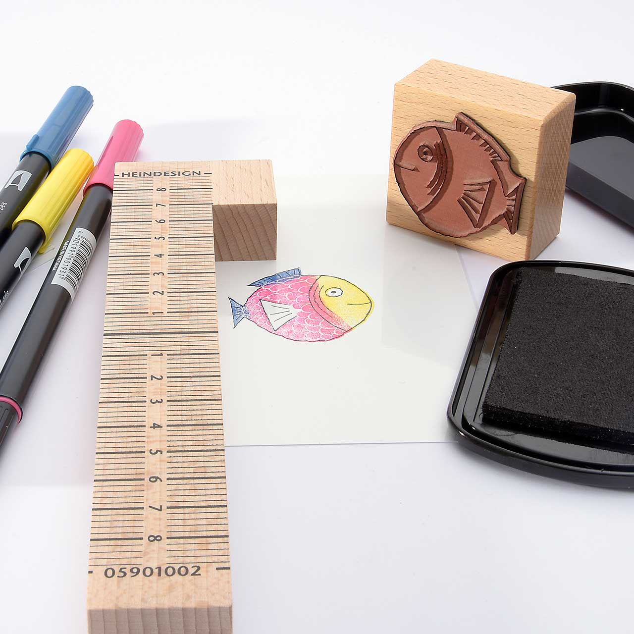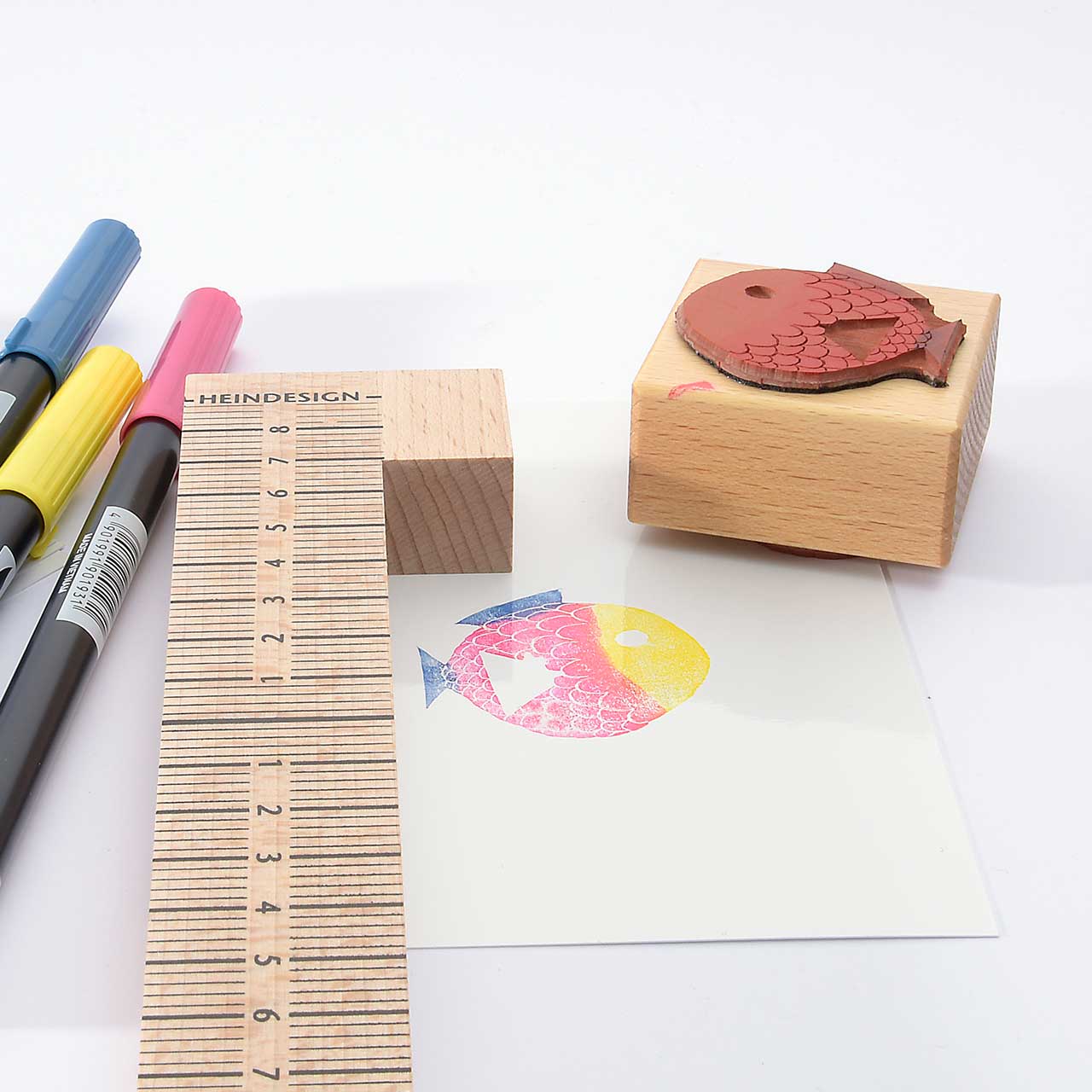 Der Kugelfisch Stempel hat zwei Seiten. Einmal die Fläche und ein mal die Kontur. Die fast genau aufeinander passen.