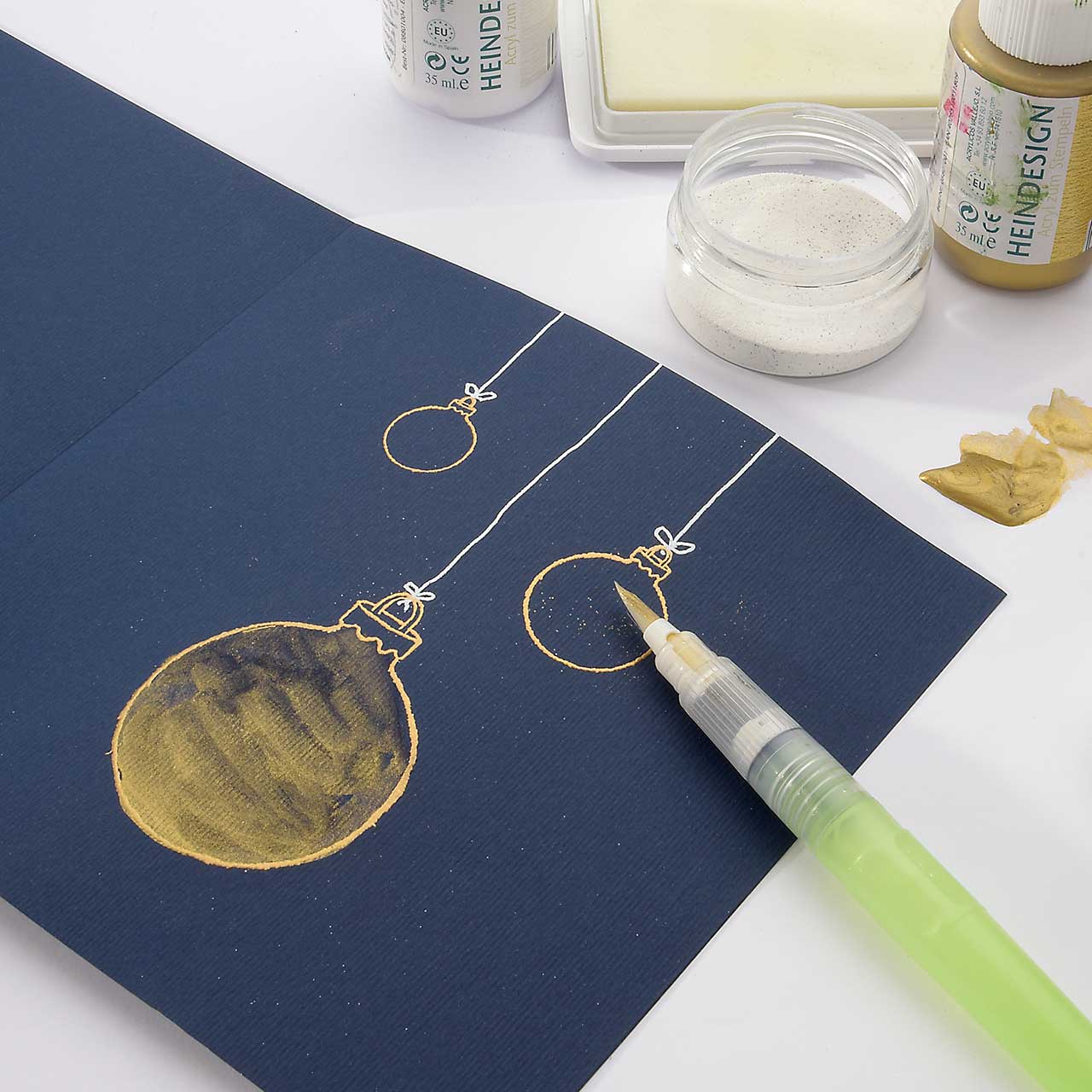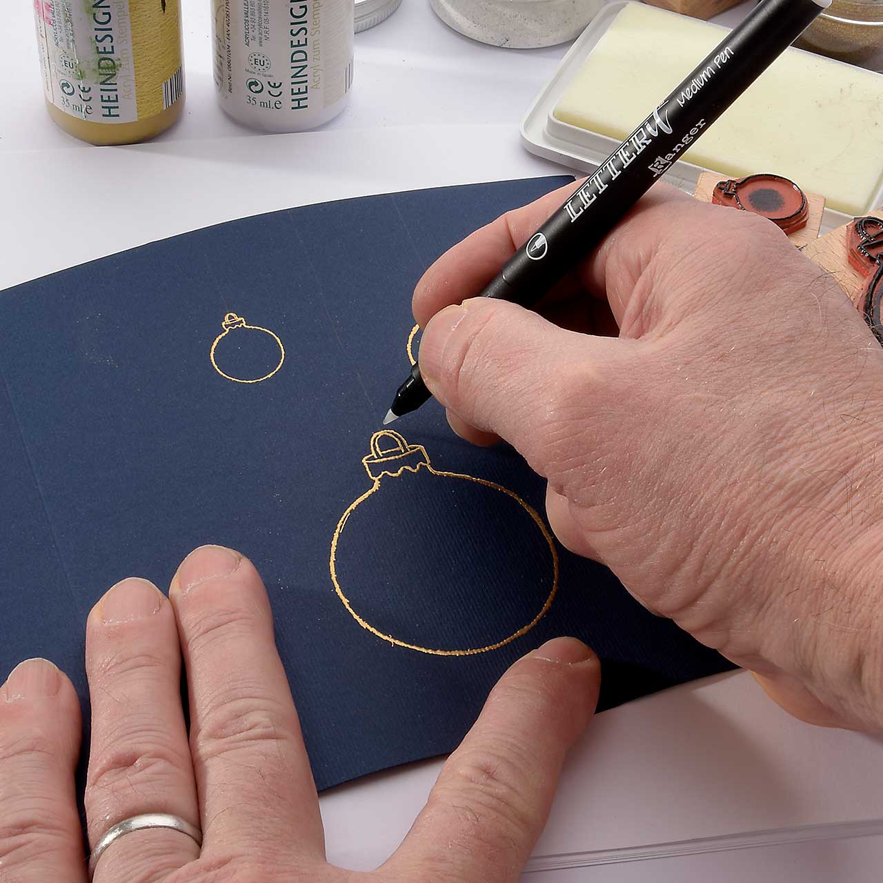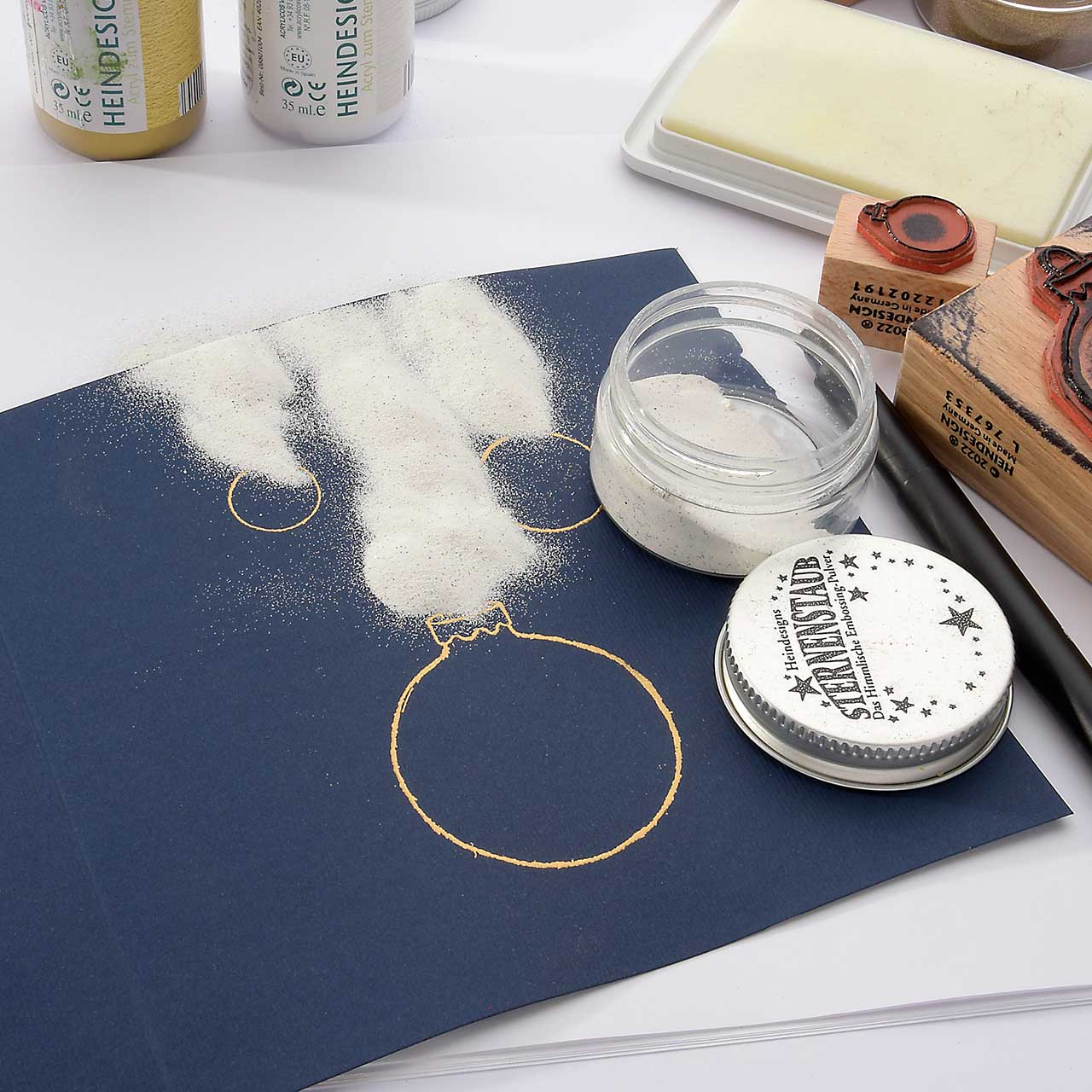 Letter it Medium Pens enthalten eine spezielle transparente Tusche, die lange feucht bleibt. So können Sie, mit genügend Zeit, Ihr Motiv zeichnen oder schreiben, um es dann mit Sternenstaub zu überziehen (embossen).
