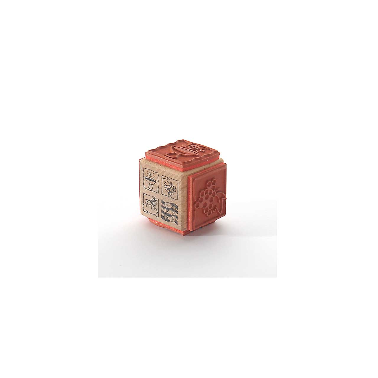 Für eine gute Handhabung der Stempel wird das Stempelgummi mit einer dämpfenden Schicht auf einen Griff geklebt. Dieser Griff besteht aus einem lackierten Buchenholzklötzchen, das das Motiv in original Größe zeigt.