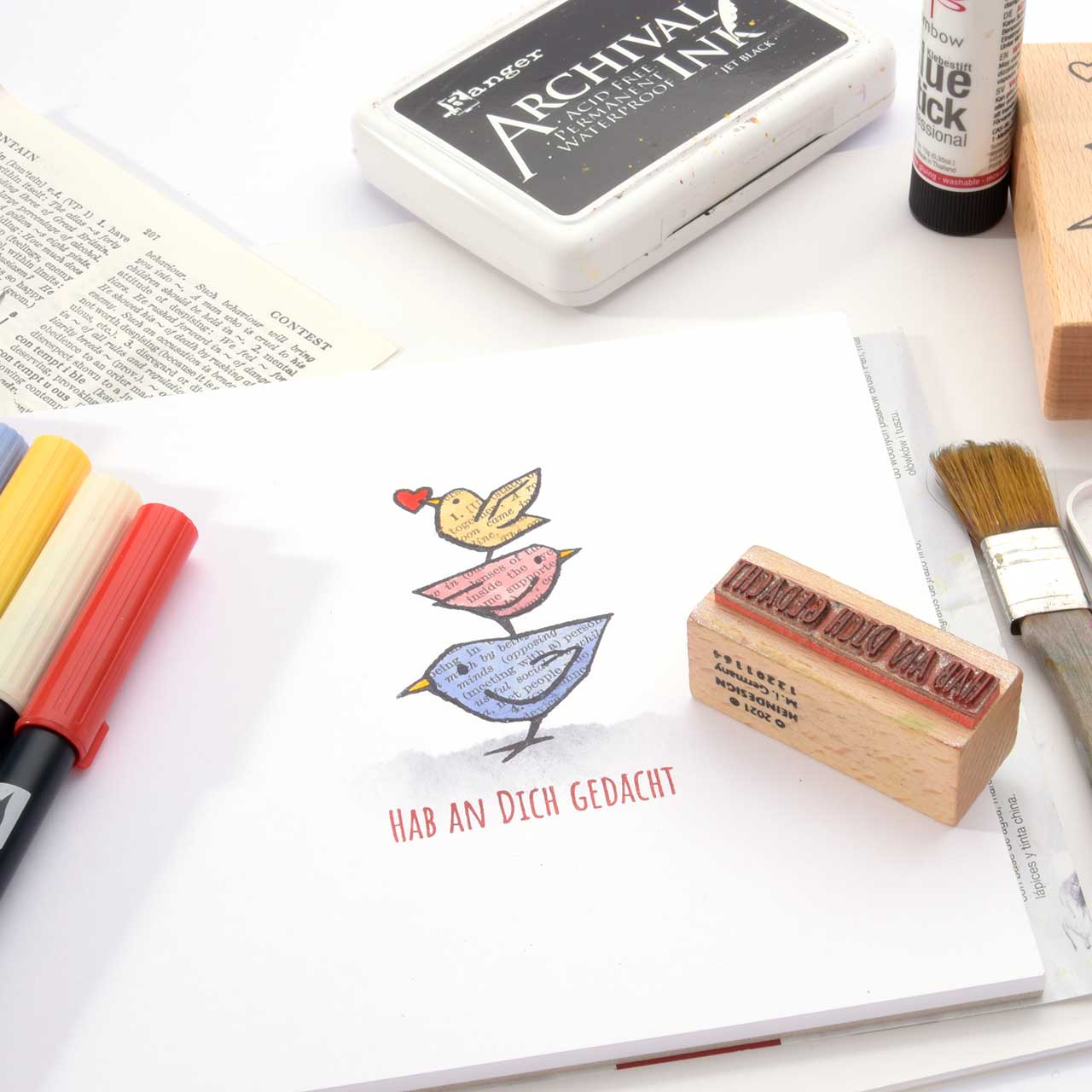 Produktinformationen "Motivstempel Titel: Drei Vögel mit Herz"