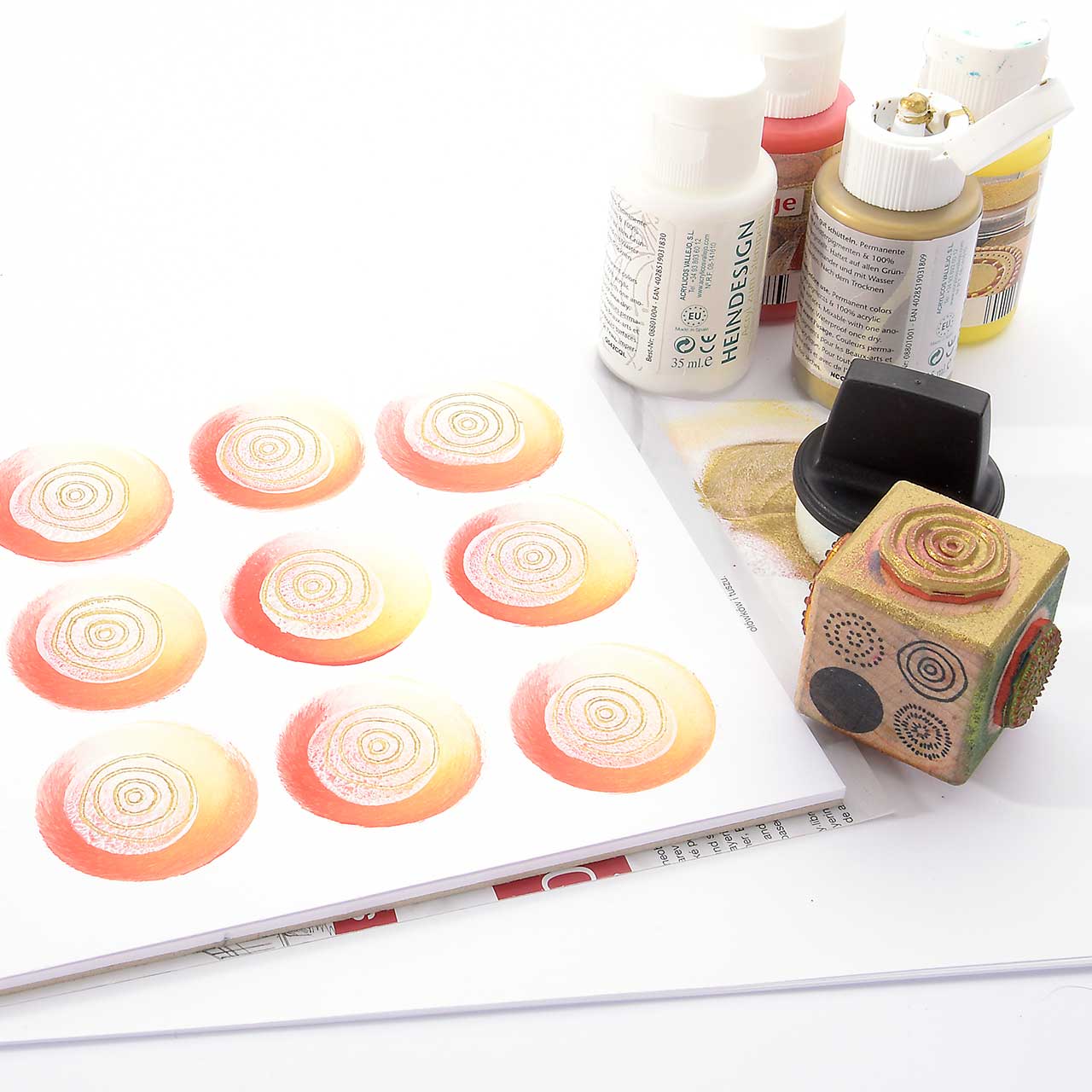 • Die Heindesign Stempel sind für Papier und für den Stoffdruck geeignet.
