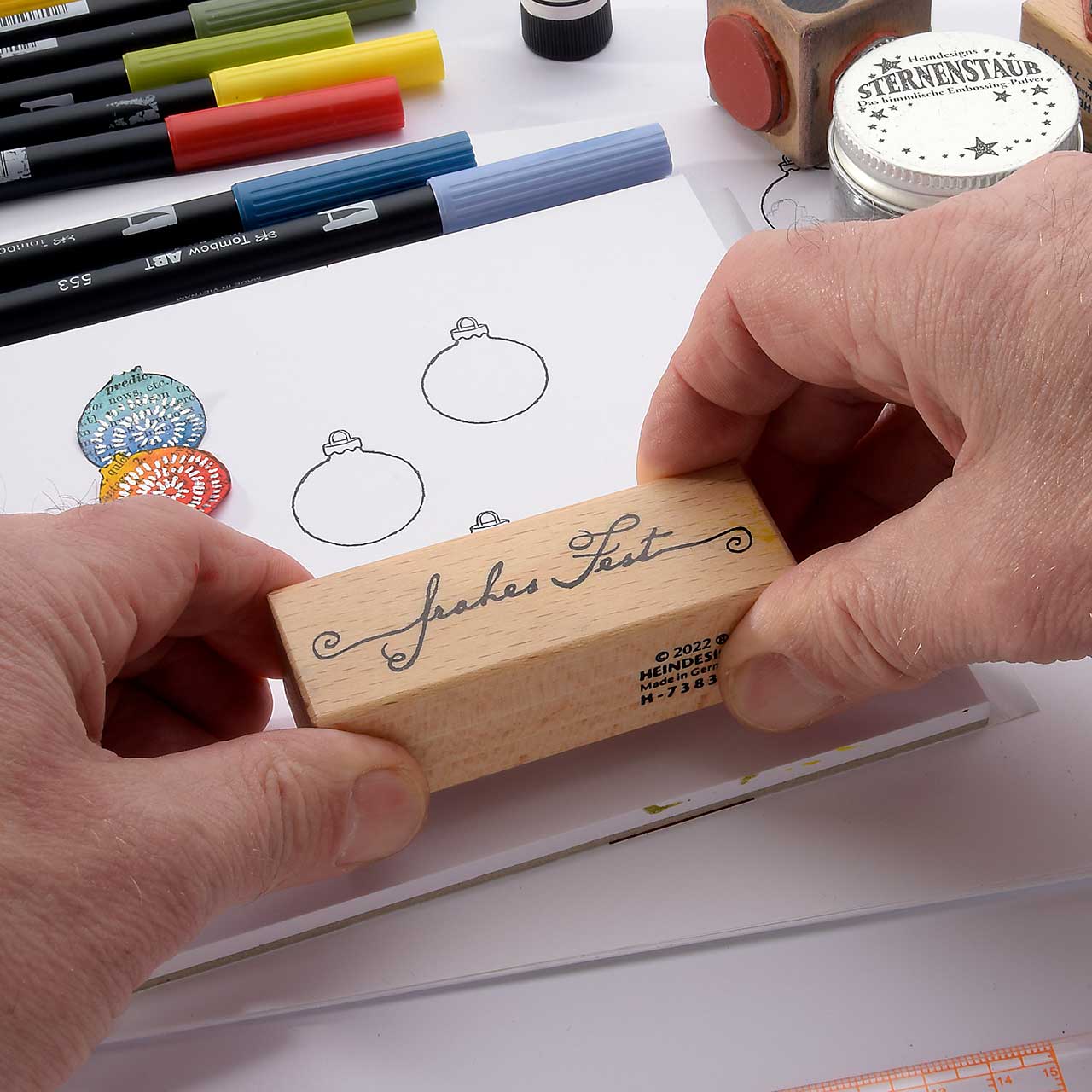 • Die Heindesign Stempel lassen sich mit Wasser reinigen, sollten aber schnell abgetrocknet werden.
