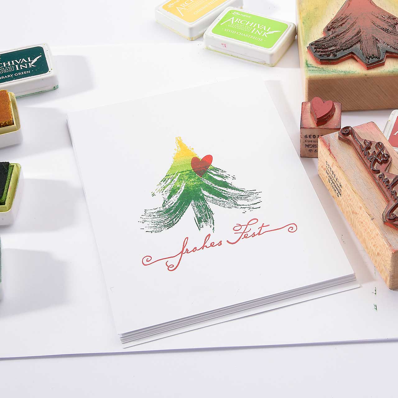 Motivstempel Titel: frohes Fest mit Schnörkel