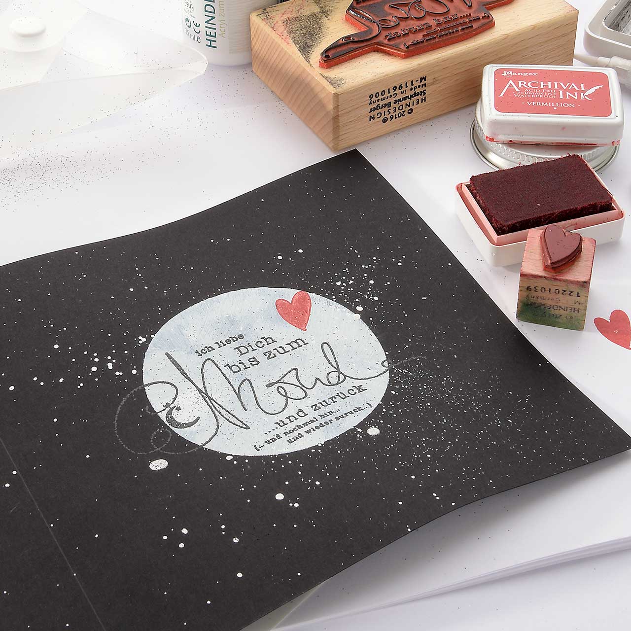 • Die Heindesign Stempel lassen sich mit Wasser reinigen, sollten aber schnell abgetrocknet werden.