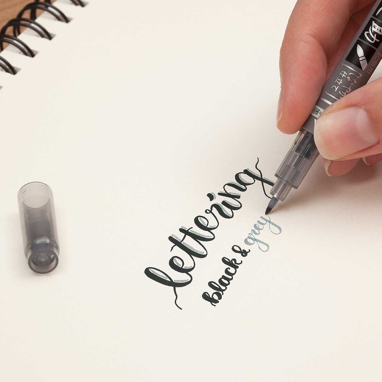Tombow Fudenosuke Pen Twin Grau/Schwarz Soft Tip